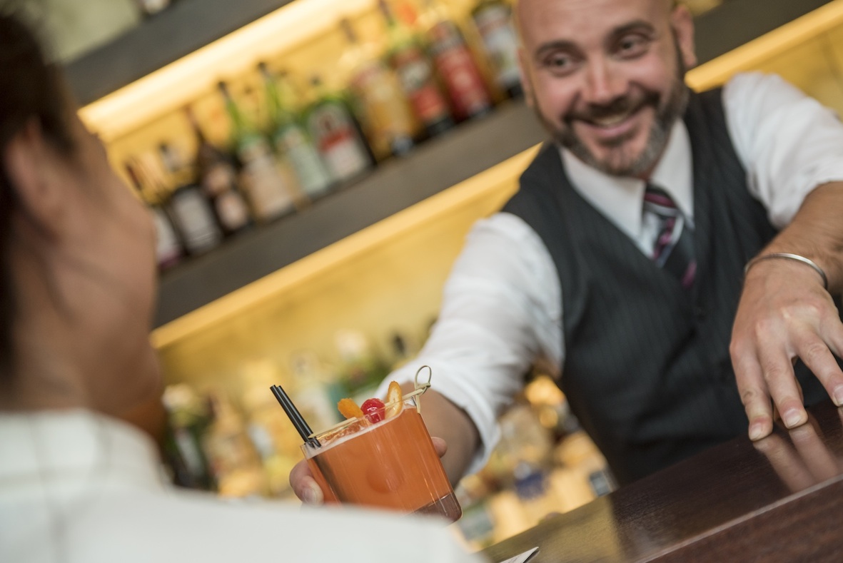 È estate a Merano. Le giornate calde invitano a rinfrescarsi con un buon drink da gustare in centro città e in un ambiente confortevole e colorato come il Lounge dei Cedri dell’Hotel Terme Merano. Il drink menu suggerito dallo Chef de Bar Aaron Stecher, 37 anni e con una lunga esperienza da professionista nel settore bar e accoglienza, è ricco di proposte golose per tutti i gusti ed esigenze; vasta gamma di tè per gli amanti dell’aromatica bevanda tradizionalmente orientale, fantasiosi cocktail analcolici per chi è astemio, e per chi non lo è sono proposti gli originali crushed, frozen, e virgin cocktail oltre a quelli classici e a una selezione accurata di pregiati vini italiani, internazionali e una lista di liquori tradizionali.