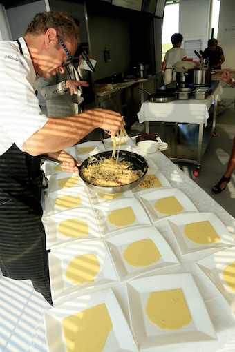 Come quella delle Tagliatelle alla Carbonara nella versione inedita di Nicola Batavia, patron de ‘L Birichin: Tagliatelle rigorosamente stirate a mano dalle due “sfogline” Silvia e Lia e condite con una crema d’uovo in camicia, prosciutto, pepe e riso croccante per un tocco di cromatismo “goloso”.
