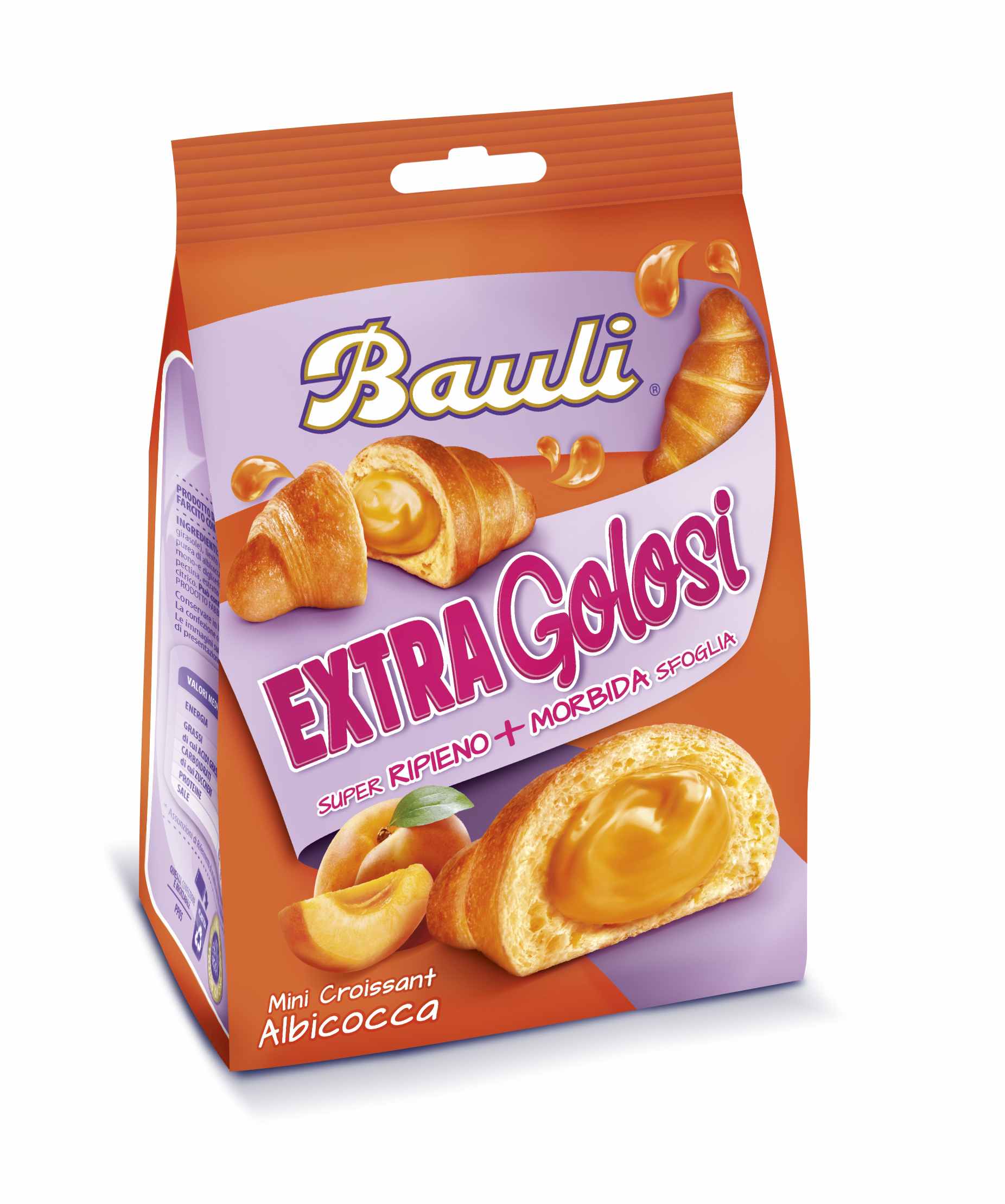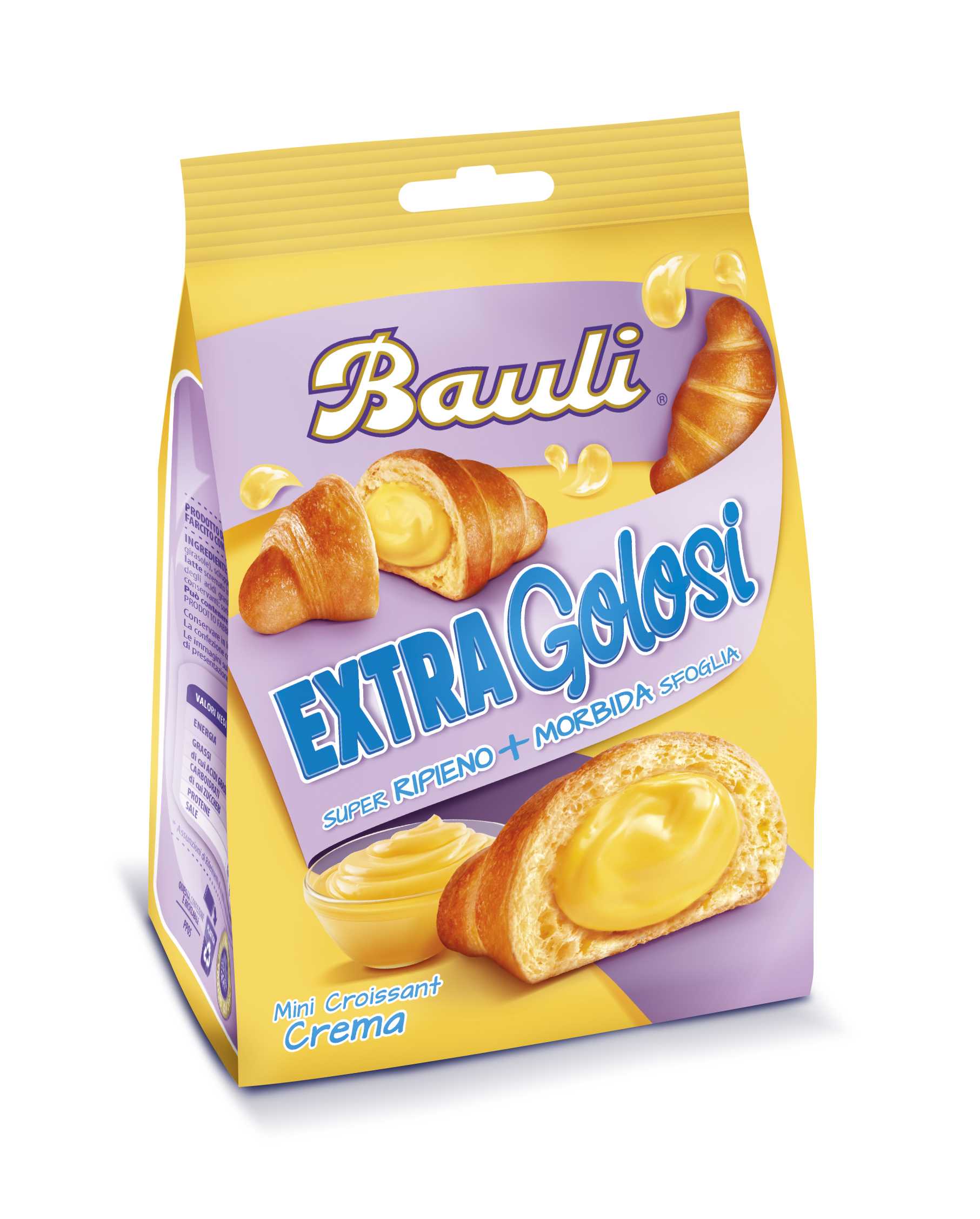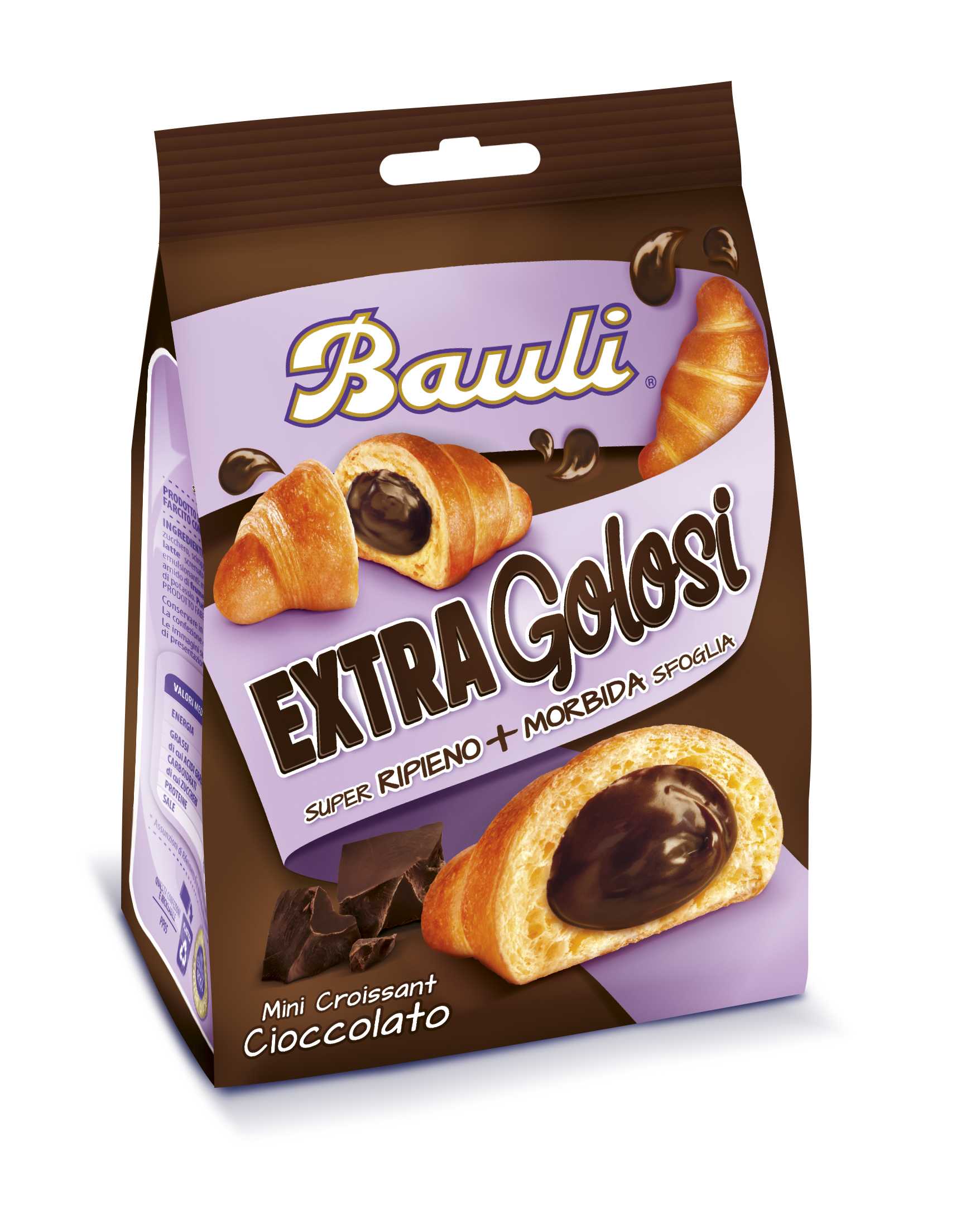 In arrivo il restyling dei Minicroissant Bauli, soffici bontà ideali per il break. I MiniCroissant Bauli svelano la loro anima golosa: nascono così gli Extragolosi. Obiettivo del brand è di valorizzare una linea storica con grandi potenzialità di mercato. Nuovo naming, nuovo pack, ricetta ancora più golosa, stessa idea originale. Extragolosi è il nuovo nome della linea che esprime in modo diretto la promessa di prodotto: tanta golosità grazie a un ricco ripieno cremoso avvolto in una mini sfoglia morbidissima.