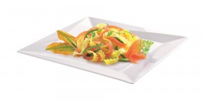Trenette con Salmone Norvegese Kv Nordic, zucchine e fiori di zucchine. Una ricetta per 4 persone