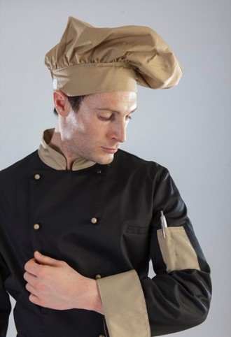 Cappello: è un elemento essenziale, non solo per una questione estetica ma per ragioni di sicurezza alimentare. Che sia il tradizionale copricapo alto o una moderna bandana deve infatti contenere per intero la capigliatura, per evitare che i capelli finiscano nei piatti.