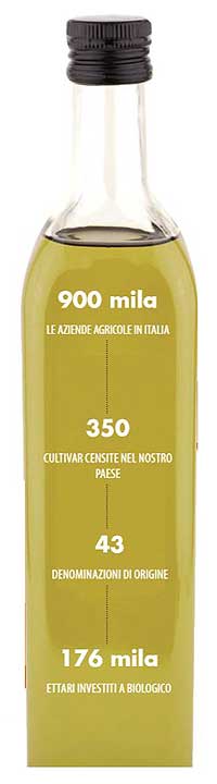 Ammontano a 154 milioni i litri di olio extra vergine venduti nel 2014, per un valore di 634 milioni di euro. Mentre - sempre stando ai dati forniti da Unaprol - sono 2,9 milioni i litri di oli Dop/Igp, pari a 31 milioni di euro. Le vendite di olio bio, invece, si attestano sui 2 milioni, per un valore di 18 milioni di euro. Infine sono 22 milioni i litri di 100% italiano, per un valore di 111 milioni di euro.Le vendite nella GDO, soprattutto di extravergine, si concentrano al centro Italia ed in Sardegna (33%) e al Nord della penisola (48%). Al Sud si vende il 19% dell’extra.
