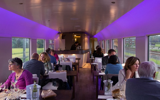 Una cena speciale a bordo di un treno. Durante il viaggio, di 2 ore e 45 minuti, sarà servito un gustoso pasto di quattro portate, preparato da Edwin Soumang (ONE Ristorante, stella Michelin) e servito da un esperto team di catering. Il menu varia ogni semestre, con il cambio di stagione. Inoltre, si può prenotare in due classi distinte: nelle carrozze ristorante di prima classe o nella domecar Rheingold (classe Panorama), dove sarà possibile mangiare all’interno di una cabina di vetro.
