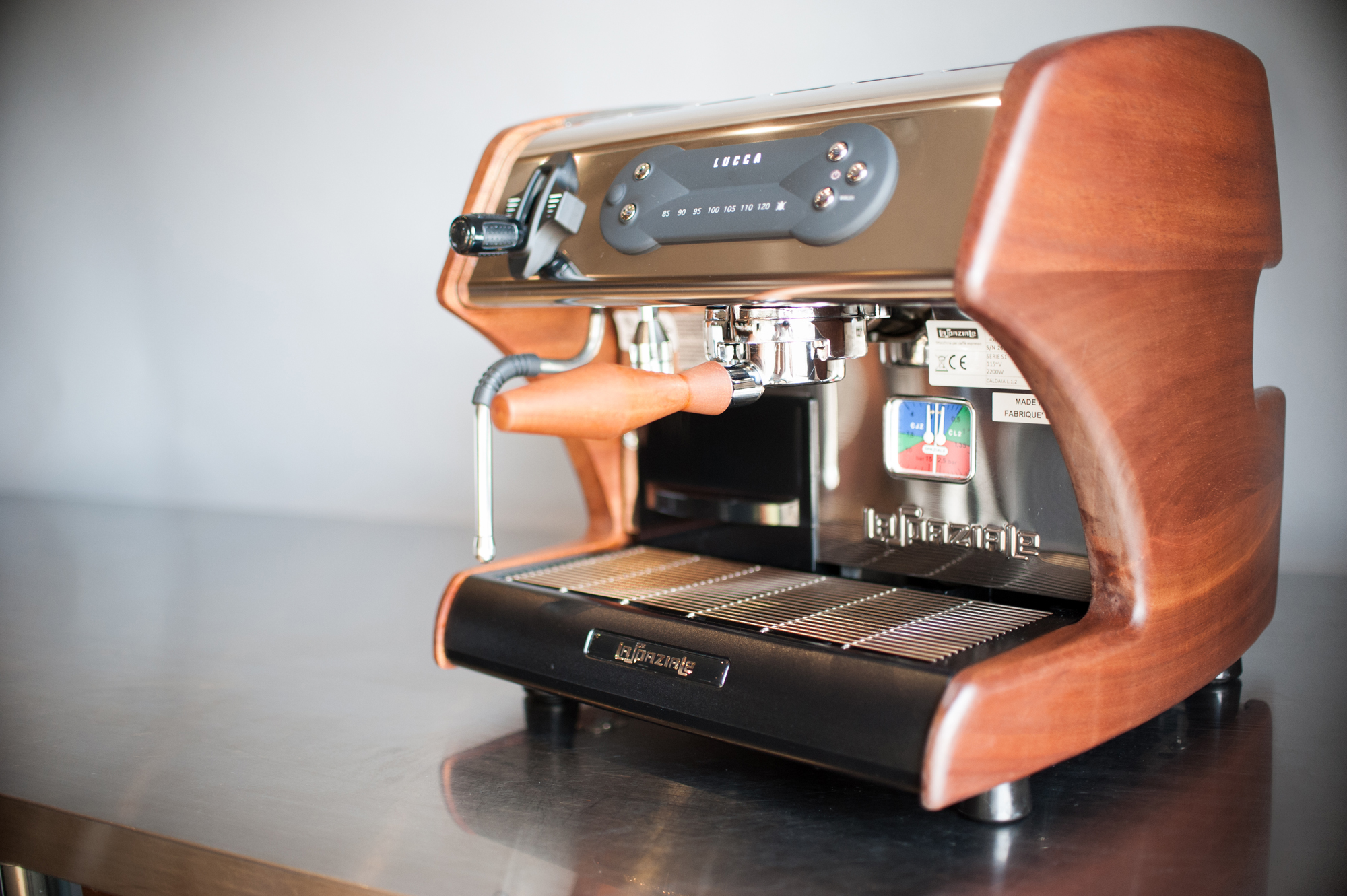 Sono questi particolari ad aver colpito Bloomberg, ma anche GQ, Bon Appetit e Gear Patrol, tra le migliori testate in contatto con Clive Coffee. Il partner di Portland, Oregon, ha voluto sviluppare una macchina dedicata e personalizzata per il proprio mercato USA, stringendo le trattative con La Spaziale nel corso del 2014. A partire dalla tecnologia delle sempre attuali S1 Vivaldi e S1 Mini Vivaldi, compatte a 1 gruppo con doppia caldaia, La Spaziale ha sviluppato la nuova Lucca A53 ridisegnando la pulsantiera e scegliendo un raffinato materiale soft touch anche per la manopola e la bacinella. Clive Coffee ha pensato al personalissimo restyling di fianchi e portafiltro in legno, realizzati a Portland.