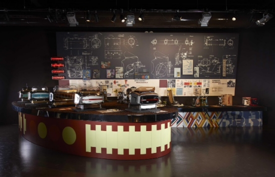 E ancora, prodotti domestici (macchine per la preparazione del caffè, lucidatrice, tostapane, frullatore, asciugacapelli, etc.), in ricordo dei trascorsi industriali al di fuori del mondo del caffè e una “Isetta” brandizzata FAEMA, microvettura utilizzata negli anni ’50 per prestare assistenza a clienti e venditori, in prestito dal Museo Nicolis. Inoltre, più di 100 fotografie storiche e contemporanee tratte dagli archivi MUMAC – Museo della Macchina per Caffè e Gruppo Cimbali, riviste e pubblicazioni d’epoca, la maglia gialla e la maglia rosa indossate da Eddie Merckx nel Tour de France e nel Giro d’Italia vinti, rispettivamente, nel 1969 e nel 1968provenienti dal Museo del Ciclismo Madonna del Ghisalloe la bici con cui il campione belga trionfò nella “corsa rosa” del 1968, in prestito dalla Collezione Alberto Masi – Biciclette Masi.