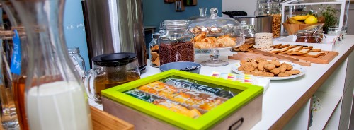 Quando si entra, si riceve una tessera personale dove viene segnato l’orario di arrivo. Al momento di uscire, si calcola il tempo trascorso. La prima ora costa 4 euro; dopo, ogni mezz’ora si aggiungono 1,50 euro. A disposizione dei clienti nel tempo di permanenza, un ricco buffet self service con spuntini dolci e salati, muffin, biscotti, frutta fresca, accompagnati da caffè, cappuccino e tè illimitati. Ma se si desidera, si possono anche portare cibi e bevande da fuori. Oppure, si possono scegliere gli optional: bibite, coca cola, panini, insalate e piatti caldi-freddi con prodotti selezionati di prima qualità per un pranzo gustoso e veloce.