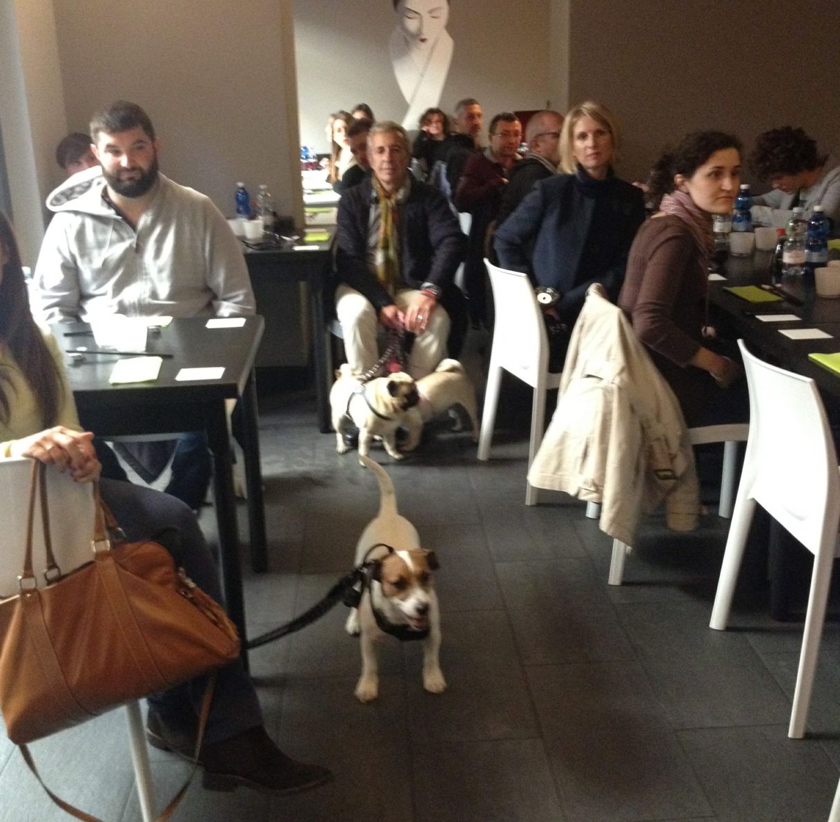 loro padroni anche al ristorante. Anche da questa considerazione deve avere preso le mosse l’iniziativa “Sei zampe a tavola”, organizzata ieri a Treviglio nel ristorante giapponese Japo di Silvia Tetoldini e Emanuele Giacomelli. L’idea, messa a punto insieme al veterinario Flavio Giardinelli, è semplice: una dozzina di cani - racconta il sito Larassegna.it - hanno accompagnato i loro padroni a pranzo sfilando per la centrale via Roma. Una volta raggiunto il locale diretto in cucina dallo chef Hiroaki Koga, si sono accomodati sotto ai tavoli, dove sono rimasti in modo educato e senza creare confusione anche mentre i camerieri passavano davanti a loro portate succulente, dal sushi alle scaloppine.