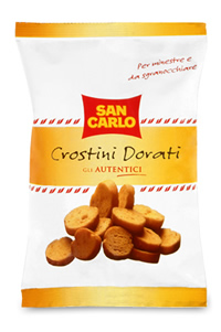 Veri e propri bestseller, i Crostini Dorati sono perfetti in ogni occasione e uno dei prodotti più apprezzati della grande famiglia San Carlo. La versatilità di consumo e il formato da 75 grammi ne fanno un prodotto adatto in ogni occasione della giornata. Ideali per rendere più stuzzicanti e appetitose zuppe, minestre e vellutate, sono deliziosi anche per un semplice spuntino, o per accompagnare l’aperitivo, per non parlare della perfetta combinazione che trovano con le insalate, che arricchiscono di gusto e croccantezza. Consumati da soli o per accompagnare pietanze di ogni tipo, i Crostini Dorati sono disponibili in 3 diversi gusti: gli Autentici, alla Campagnola con erbe aromatiche e dal Sapore Vivace, più saporiti.