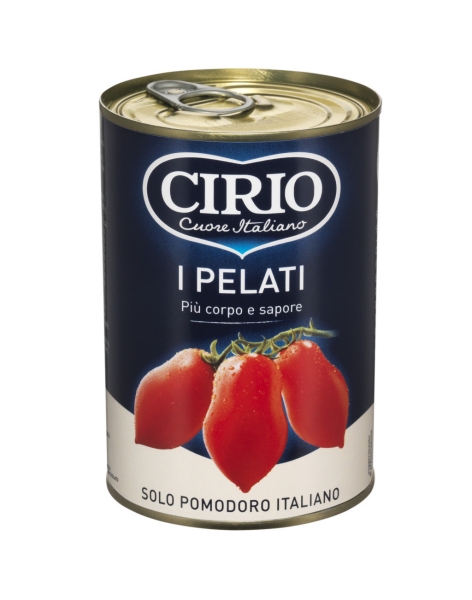 I Pelati Cirio, belli, grandi e calibrati, sono il simbolo della cucina italiana e della tradizione Cirio. Coltivati e lavorati con passione nella zona italiana d’eccellenza, sono immersi in una ricca salsa di pomodoro. Corposi, di colore rosso vivo e maturi al punto giusto, hanno il sapore pieno e tutta la polposità del pomodoro fresco.