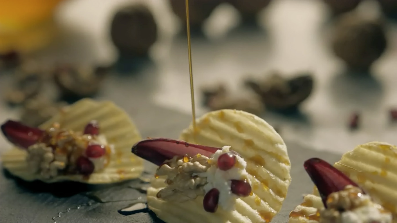 L’ambientazione dello spot è quella familiare e informale di una cucina con un giovane protagonista intento a preparare l’aperitivo con l’obiettivo di stupire uno degli invitati di nome Carlo. Ecco allora che il protagonista indossa i panni dello chef e si cimenta in una spettacolare preparazione che ha al centro la storica patatina. Sarà proprio Rustica a rendere speciale la serata tra amici e soddisfare l’ospite più esigente, Carlo Cracco, con una ricetta semplice, realizzata con pochi ingredienti presenti nella dispensa di ogni casa: noci, melograno e un formaggio cremoso.