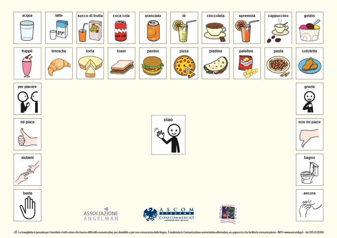 «L'iniziativa vuole essere un gesto di attenzione verso i bambini e le persone con disabilità e testimonia la volontà e l’impegno da parte dell’associazione e del gruppo nel migliorare sempre più l’accoglienza e l’inclusione nei locali pubblici di Bergamo – ha detto Giorgio Beltrami, presidente del Gruppo bar caffetterie Ascom -. La tovaglietta si rivelerà molto utile per chi non può comunicare a voce le proprie richieste, ma sarà anche una gioia per i bimbi piccoli poter comprendere con facilità ciò che vi è rappresentato e fare il proprio ordine in autonomia divertendosi a riconoscere sulla tovaglietta i cibi preferiti. Rappresenta un gesto di apertura e di inclusione da parte dei pubblici esercizi. Inoltre può essere anche uno strumento utile per i turisti».