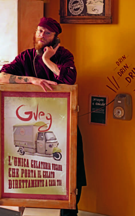 ALLA GELATERIA G-VEG DI TRIESTE, MARIO MORPURGO, SI È SPECIALIZZATO IN SORBETTI VEGANI A BASE DI ACQUA, CHE SONO ANCHE SENZA GLUTINE[/caption]
