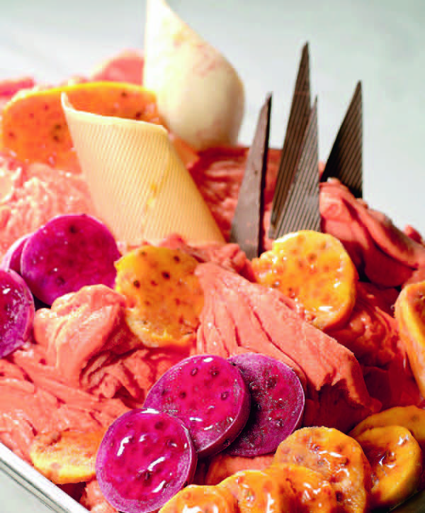 La decorazione distingue il professionista e completa il prodotto. “Oggi c’è più attenzione di un tempo alla presentazione. I gelatieri hanno capito che si compra anche con l’occhio e si sono adeguati. Attenzione però a non esagerare. Gelati troppo colorati e decorati trasmettono l’idea di un prodotto artificiale. La decorazione deve abbellire, non coprire”, mette in guardia Stefano Venier. Detto questo, come avviene nel campo del bere miscelato, c’è chi ama l’eleganza e chi invece preferisce stupire con ornamenti di grande impatto. “È questione di gusto personale, credo che non esista una regola valida per tutti. Elegante, minimalista piuttosto che esagerata e colorata, essenziale è che la decorazione rappresenti il gusto del gelato”, afferma Franco Di Benedetto. “Anche nel campo della variegatura abbiamo fatto passi da gigante” afferma Matteo Cutolo, ex tesoriere dell’Associazione Pasticceri Napoletani, oggi responsabile FIP (Federazione Italiana Pasticceri) per il Sud Italia, nonché patron della Pasticceria Gelateria Generoso di Ercolano, appena fresca di ristrutturazione. Come mai? “È merito di un mix di elementi: la cultura trasmessa dalle scuole, la comunicazione delle aziende, la maggiore disponibilità di materie prime e il desiderio di noi artigiani di ampliare la gamma”, chiarisce Candida Pelizzoli. Che aggiunge: “La variegatura può essere fatta con salsa, composta, cioccolato bianco, fondente o al gianduia e frutta candita, dipende dall’estro e dalla creatività del maestro gelatiere”.