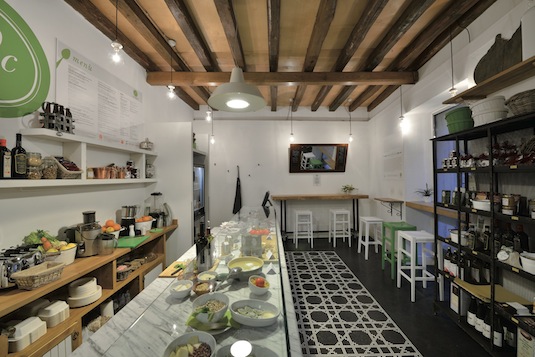 La progettazione di CostaGroup, che ha brillantemente captato l’essenza del progetto, è dunque in assoluta sintonia con lo spirito di Ciao Checca; particolari ricercati, attenzione ai dettagli, trame bianco-verdi e nulla di superfluo. Bancone bianco all’ingresso e un ambiente accogliente e luminoso. Nella sala interna il tavolo sociale è circondato da piante e libri mentre, varcato l’ingresso, una bella vetrata divide la cucina con pavimento di parquet e mosaici, dalla sala principale. E così, nella breve attesa, gli avventori possono osservare gli Chef all’opera. Le sedute, colorate e informali per chi sceglie di mangiare in loco, riflettono l’impostazione street-food del progetto. Se invece si ha voglia di gustare la Pasta alla Checca e le altre deliziose ricette di casa del menù passeggiando nel centro storico di Roma, il cibo viene servito in confezioni - comode, funzionali e, ça va sans dire, completamente compostabili – perfette per il “Taste Away”.