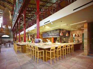 riqualifica lo spazio ripensandolo come una nuova piazza urbana, un teatro del gusto in cui si affacciano le botteghe. In questo caso i rivestimenti ceramici firmati Tagina sono interpretati in chiave moderna a supporto dell’aspetto più tradizionale delle botteghe dei mercati coperti totalmente a vista. L’area del laboratorio viene estesa concettualmente con le piastrelle in tutto il negozio. L’architetto Marco Casamonti racconta così il progetto … “L’insieme architettonico valorizza la vocazione artigianale delle botteghe, disposte, come lungo una strada o una piazza, secondo una sequenza ordinata che realizza un sistema espositivo “aperto” in grado di consentire la piena visibilità dei laboratori di lavorazione e la godibilità da parte del pubblico dell’attività manuale connessa con la preparazione dei cibi. Tutti gli spazi delle botteghe, sia di preparazione che di somministrazione e vendita, così come le aree destinate ai servizi, sono pensate per restituire, seppur ognuna con le sue specifiche caratteristiche funzionali, un’immagine unitaria e gioiosa di mercato. Il primo piano del Mercato Centrale realizza a Firenze una nuova tappa di un itinerario europeo dei mercati storici ed enogastronomici all’interno di una architettura che coniuga, con una consapevolezza tutta rinascimentale, modernità e tradizione…”.