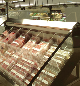 Un esempio molto interessante è quello dell’architetto Carlo Ratti che inserisce il suo nuovo concept per Coop in un ambito di un futuro, presente, possibile, con un’immagine molto tecnologica. Lo spazio è neutro, gli arredi sono posizionati a distanza fra di loro restituendo allo store un respiro di comfort spaziale. Le “barche” espositrici sono state ripensate completamente. I contenitori del cibo sono scatole trasparenti affiancate, che creano attenzione e spazio visivo solo al colore e alle forma del cibo. La tecnologia presente nel cuore di questi espositori aiuta l’utente a recepire le informazioni necessarie per l’acquisto. Le barche espositive, superiormente, sono composte da una veletta tecnologica che a distanza specchia il cibo raddoppiandone l’immagine e rendendo lo spazio pieno. Da vicino, invece, si scopre che questo specchio è in verità uno schermo nel quale le informazioni dell’etichetta scorrono con animazioni alla minority report. Le informazioni si attivano, attraverso un sistema di sensori, una volta spostato il prodotto scelto. Questi espositori parlano con l’utente come i frigoriferi e i contenitori refrigerati, infatti ogni arredo è supportato dal suo device tecnologico per raccontare i contenuti legati al singolo prodotto. Per finire due robot con braccio meccanico porzionano merende come macedonie e frullati.