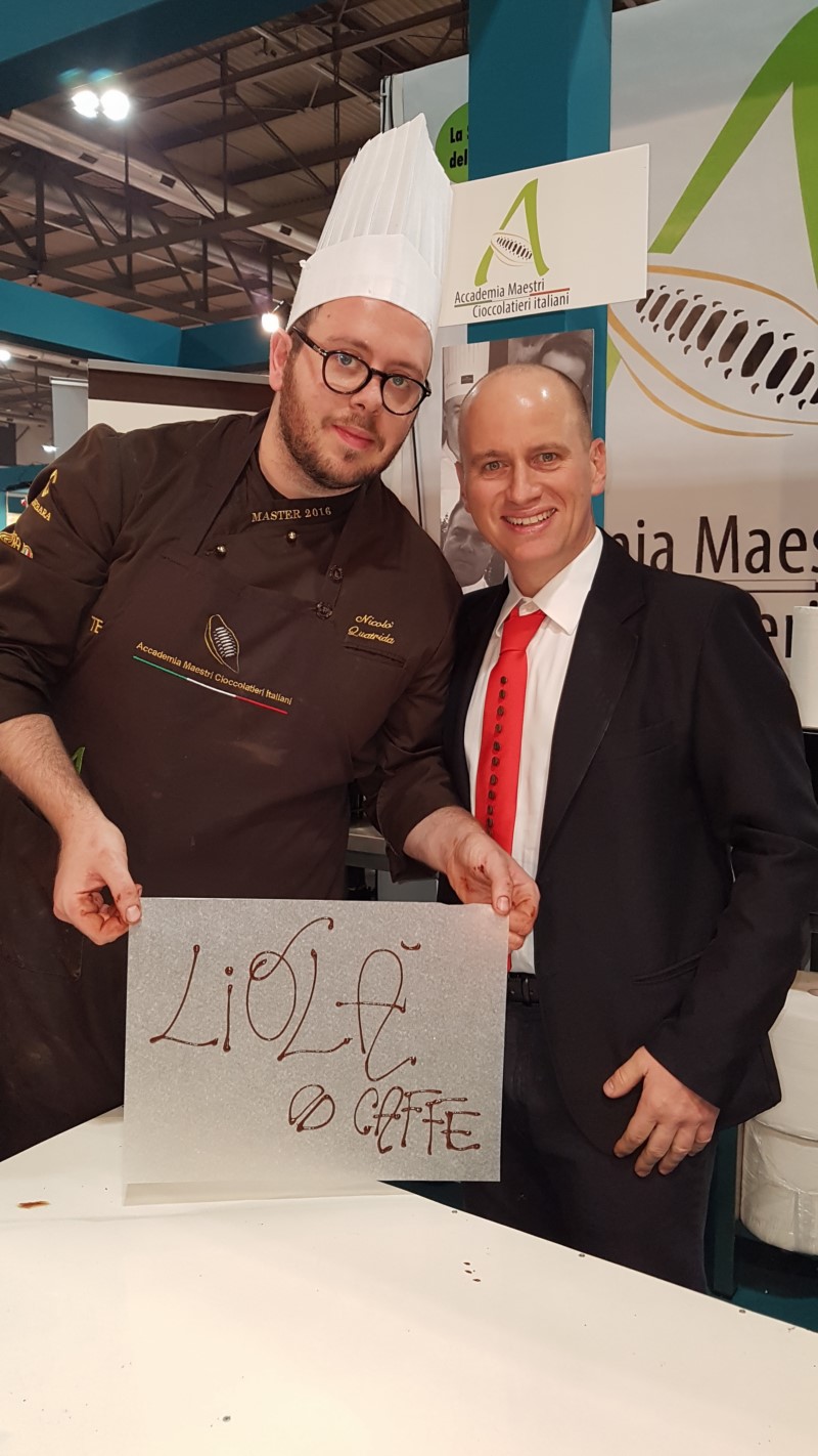 L’importante sodalizio è nato recentemente a Milano, in occasione dell’evento Artigiano in Fiera, dove è stato sperimentato per la prima volta il connubio tra il cioccolato realizzato dal maestro Della Vecchia e dai suoi allievi con il caffè alle vinacce -unico al mondo- prodotto dalla Liolà Caffè di Conegliano (TV). La fase di sperimentazione prevedeva diversi laboratori di cioccolato proposti dal vivo nello stand della fiera e quindi aperti ai visitatori.