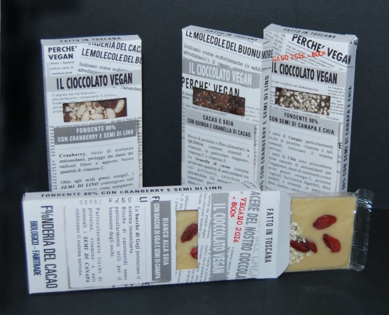Completano la proposta la linea di cioccolato vegano, con tavolette in cui il latte è sostituito dalla soia, le creme spalmabili ottenute usando olio di oliva, in rispetto alla tradizione italiana, e la selezione di tavolette 100% biologiche, dallo 0% fino al 100% di cacao, in grado di soddisfare anche il palato più esigente. Il 100% è il best seller della Fonderia, cacao puro molto profumato e dal risultato inaspettatamente gradevole e morbido al gusto. Sarà presentato al Taste anche il restyling della “spalmabile bianca vegana”, per la prima volta proposta con l’aggiunta di pezzettini di cioccolato fondente 70%, per renderla più gustosa e caratteristica.