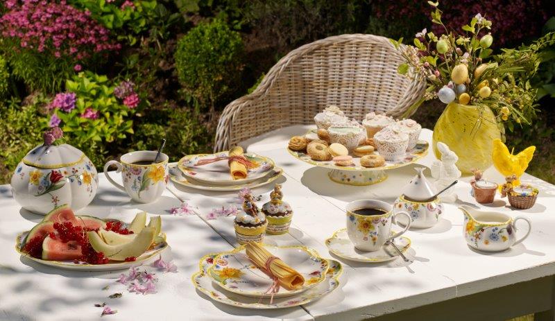 Nuove collezioni e referenze per Mariefleur Spring firmato Villeroy & Boch che abbellisce la tavola con coniglietti ed uccellini dipinti in colori pastello e decorati con fiori primaverili.