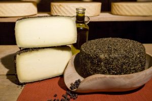 Cosa accadrebbe se al latte di capra si unissero il pepe nero del Vietnam e un pregiato olio d’oliva, alimenti che venivano scambiati lungo la “Via della Seta”? Nasce così il Caprino affinato in pepe Tellicherry & olio extravergine d’oliva, un altro formaggio dal sapore forte e deciso, ma delicatamente speziato e piccante. La tradizionale forma circolare, con i grani scuri a confezionarla, ha una croccante crosta che ne conserva intatto tutto il profumo. Il Caprino al pepe è stato abbinato al Pinot Nero Doc Collio della cantina Ca’ Ronesca di Dolegna del Collio (Go). Dall’intenso profumo di ciliegie e frutti di bosco maturi, al palato è pieno e fruttato. Un vino deciso ed elegante, caldo ed equilibrato con un buon finale persistente.