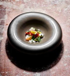 Ad accompagnare lo chef in questa nuova avventura c’è una squadra capitanata dal direttore di sala Simone Dimitri, già manager del bistrot del Mandarin Oriental, affiancato dal sommelier Yoel Abarbanel, già alle cantine di ristoranti di grande prestigio internazionale come Taillevent, Ledbury e Le Gavroche. La sala, in grado di ospitare fino a 32 coperti, riflette la personalità, la cucina e la storia dello chef, interpretati dall’architetto Mario Abruzzese.