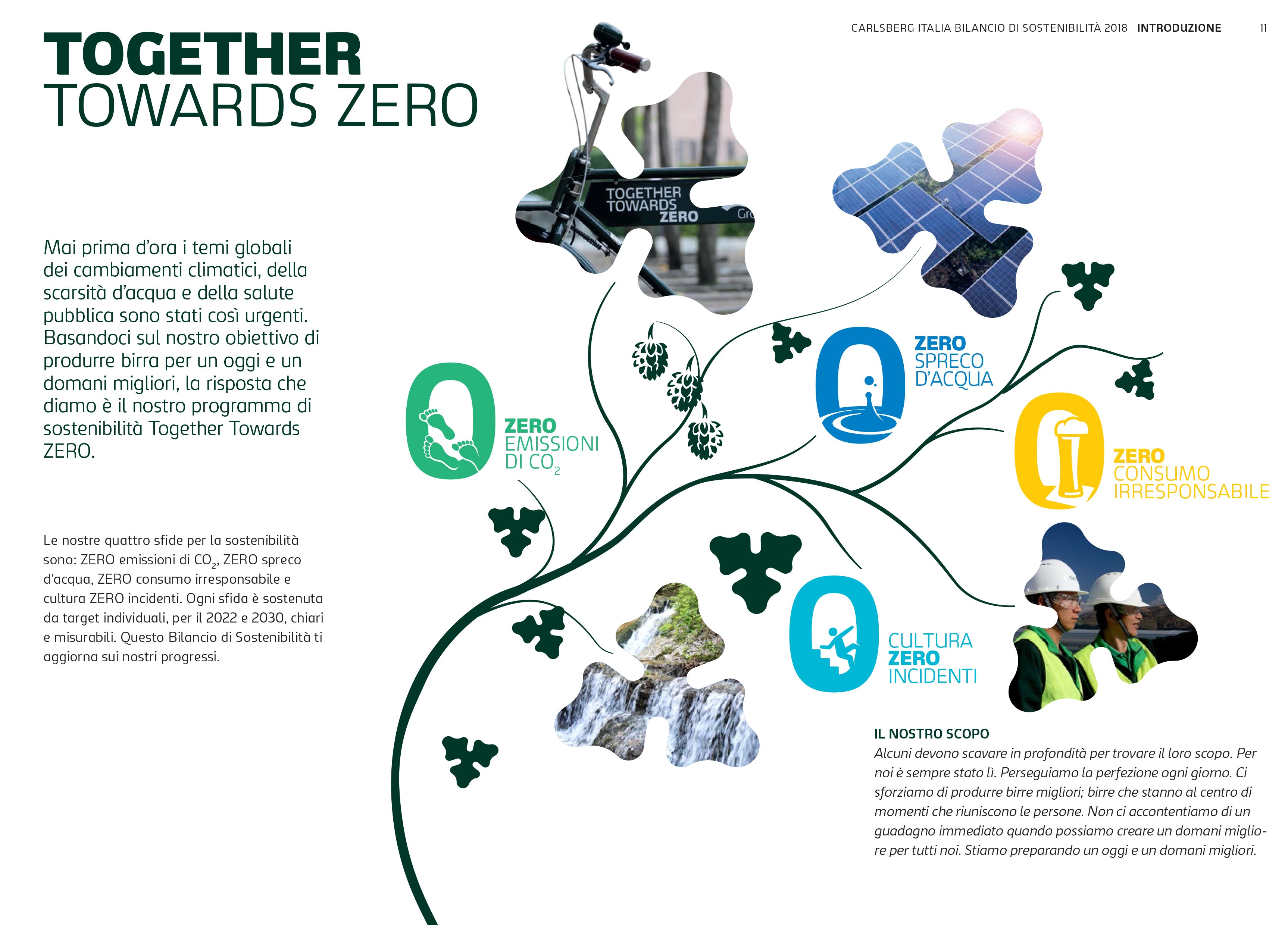 Un 2018 ricco di soddisfazioni. Gli Obiettivi di Sviluppo Sostenibile dell’ONU, come il risparmio idrico ed energetico, le emissioni di CO2, il consumo responsabile di bevande alcoliche e la sicurezza sul lavoro, sono stati rispettati dal gruppo, che dal 2017 punta su Together Towards ZERO, programma che fissa nuovi standard di sostenibilità internazionali. E quando si parla di zero significa davvero zero emissioni di CO2, sprechi d’acqua, consumi irresponsabili e incidenti.