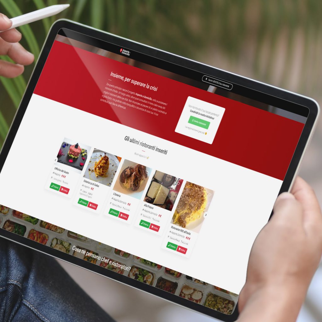 È online da pochi giorni AsportoeDomicilio.com, il sito web che raccoglie tutti i ristoranti che fanno servizi di home delivery e take away, dando la possibilità ai ristoratori di avere una vetrina gratuita e agli utenti di trovare quelli più vicini alla propria abitazione in pochi clic. È la nuova iniziativa della startup Soplaya a favore dei ristoratori colpiti dalle conseguenze della pandemia, specialmente in quelle zone d’Italia in cui è in corso un secondo lockdown.