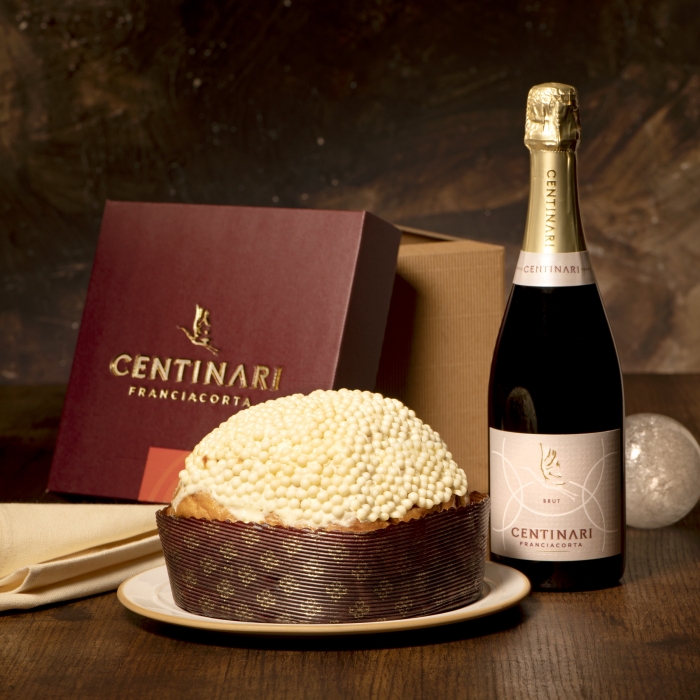 Il Panettone speciale e di grande pregio artigianale, realizzato solo con ingredienti freschi e naturali, lievito madre ed una lavorazione “slow”, che combina la ricetta tradizionale con i gusti moderni e la nota elegante del Centinari Franciacorta è proposto in due variazioni: la prima prevede uvetta al Franciacorta e gocce di cioccolato fondente, la seconda albicocche candite e glassa al Franciacorta e cioccolato bianco.