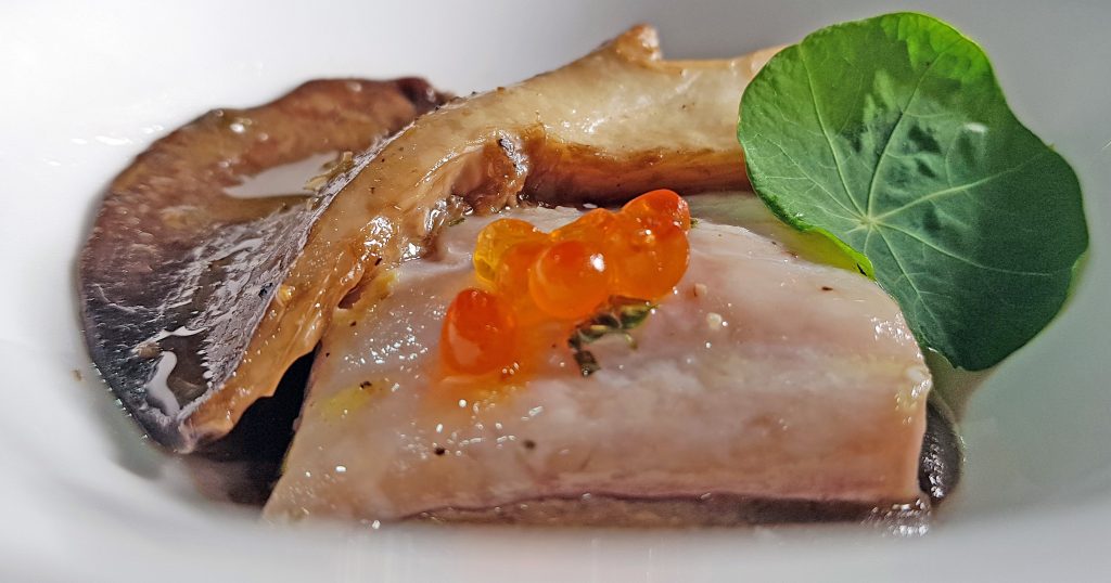 Trancio di capone con purea di lenticchie nere ennesi e uova di salmone selvatico[/caption]