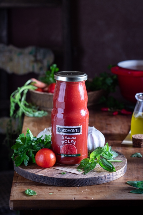 Agromonte affianca ai propri prodotti icona, primo fra tutti la salsa pronta di pomodoro ciliegino, una nuova proposta di qualità: la polpa di pomodoro e datterino, “La Nostra Polpa”.