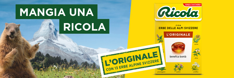 Il focus della campagna è infatti l’originalità della miscela alle 13 erbe alpine svizzere, Pimpinella, Veronica, Malva, Menta, Millefoglio, Salvia, Altea, Marrubio, Alchemilla, Piantaggine, Sambuco, Primula, Timo, con cui vengono realizzate sin dal 1940 le caramelle. Ad avvalorare il messaggio di unicità e originalità è ancora una volta l’iconica marmotta che invita gli spettatori a mangiare una Ricola per assaporarne il suo gusto inconfondibile e inimitabile. La campagna TV “Mangia una Ricola” è costituita da spot da 15” e 20”, ha il suo focus sui canali principali, con posizionamento premium nei programmi più visti e in linea con il target.