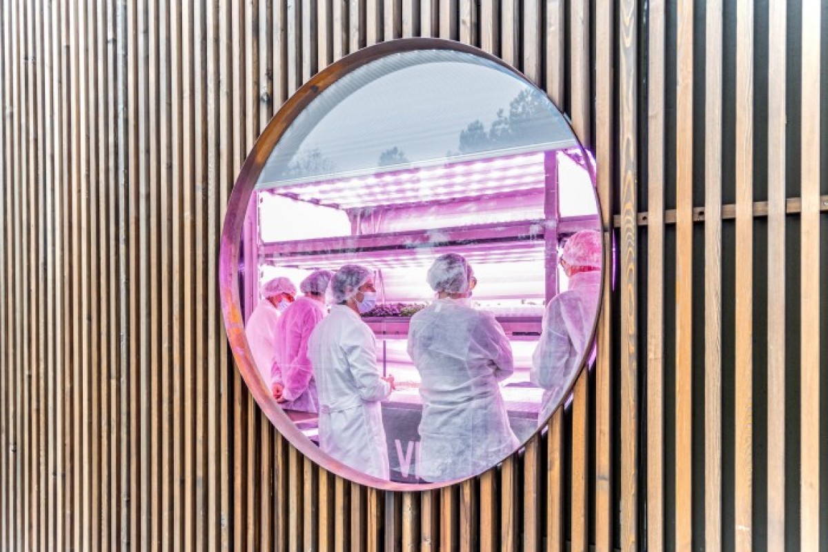 Dagli oblò dalla luce viola nel parallelepipedo rivestito con assi di larice si scorge un mondo tra il magico e lo spaziale, dove piccole piante germogliano su minuscoli dischi organici sotto lampade colorate. Siamo Da Vittorio a Brusaporto, dal 2010 tristellato Michelin, dove è nata la prima vertical farm al servizio dell’alta ristorazione.
