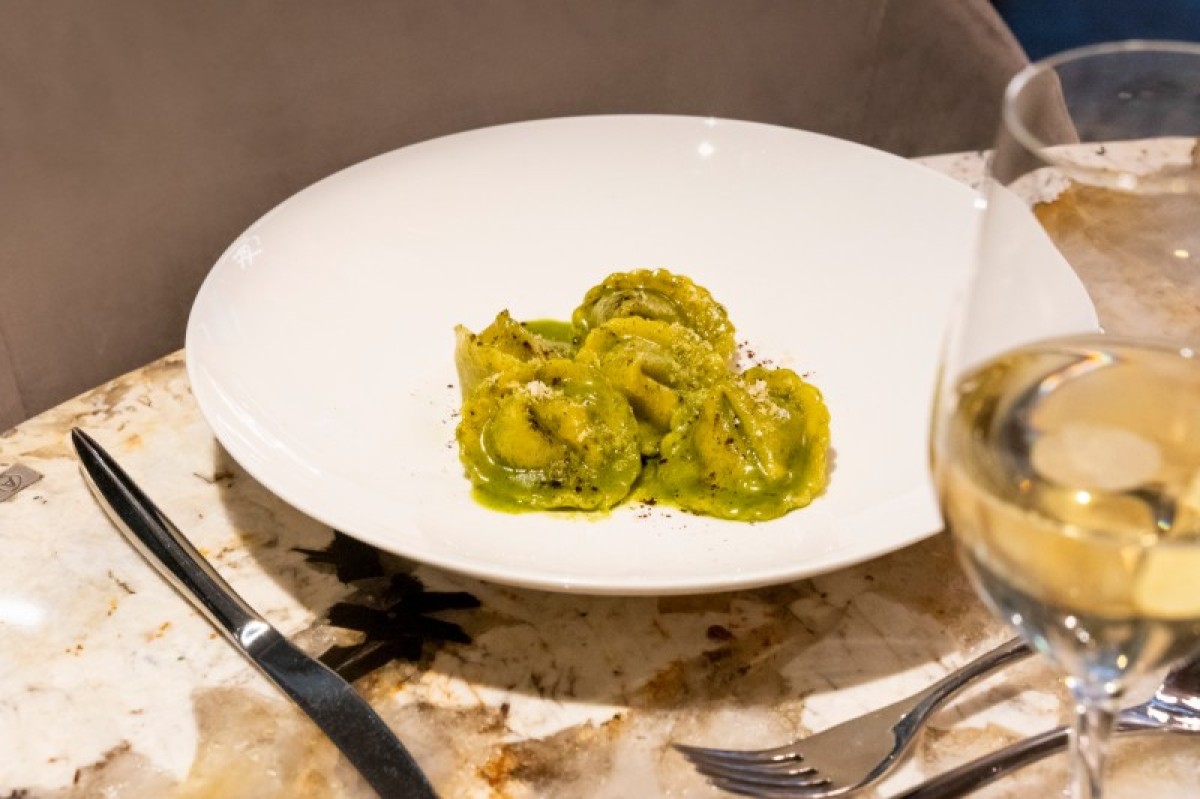 La cucina è composta da una serie di piatti signature di Tomei, con alcune novità che strizzano l’occhio a Milano, ribadendo una filosofia cara a Tomei basata sull’elaborazione di ricette allineate al posto in cui ci si trova (succede così anche negli altri tre ristoranti; nello storico Imbuto di Lucca, così come all’Hotel Bauer di Venezia e presso il Terraforte del Castello di Terriccio, nel pisano).