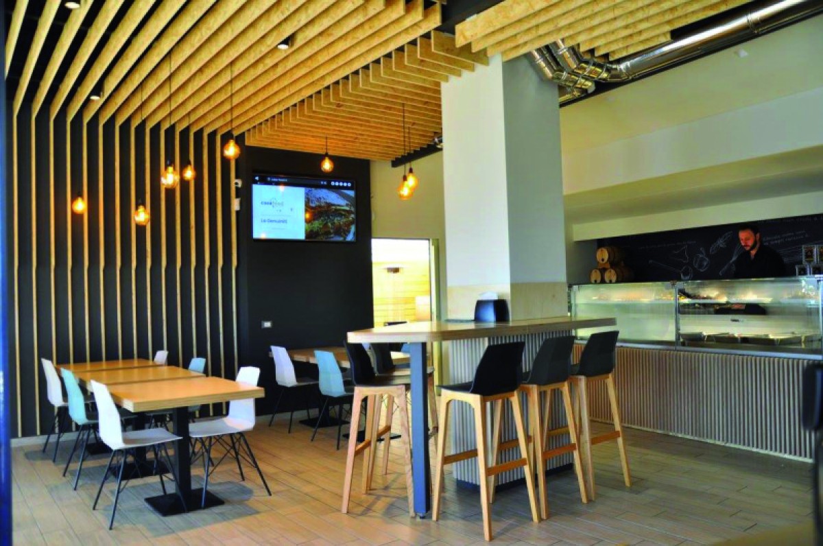 Apparentemente è una semplice gastronomia ma in realtà incarna il perfetto connubio tra tavola calda, ristorante e take-away, in una location moderna che ospita i clienti sia all’interno che all’esterno del locale.