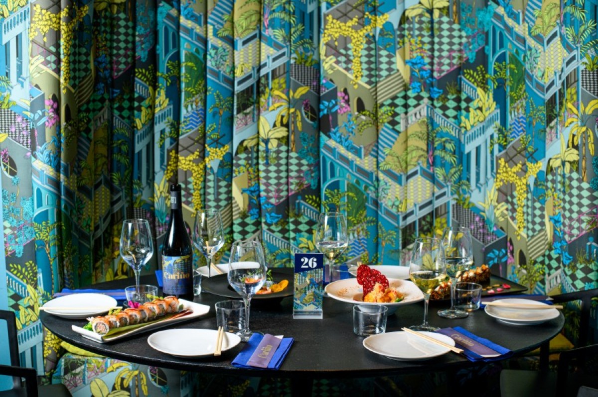 Cariño Nikkei è caratterizzato da spazi minimal e atmosfera allegra dai colori vivaci. Cucina a vista, una sala interna avvolgente per colori e decori con le pareti interamente dipinte a mano – in tema esotico jungle - dall’artista Massimiliano Mastronardi, e un ampio e comodo dehor esterno. A Cariño Nikkei si viene per un pranzo leggero o un business lunch, per l’aperitivo – con l’offerta para picar - e naturalmente per la cena.