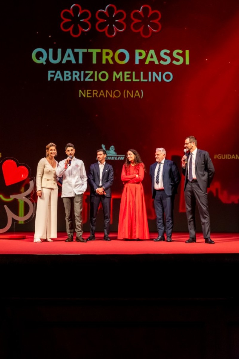 Tornano a splendere le tre Stelle Michelin anche in Campania, a Nerano, dove il Quattro Passi aprì 40 anni fa: la conquista delle due stelle fu opera dello chef Tonino Mellino che da qualche anno ha ceduto il timone al giovane figlio Fabrizio, che ha compiuto l’ultimo passo per entrare nell’olimpo della ristorazione mondiale. Il suo tocco ha elevato la cucina campana e mediterranea a livelli di sorprendente raffinatezza, stile e sensibilità. Tra i piatti che hanno colpito gli ispettori le linguine alla Nerano, fusillone ai ricci di mare, l’agnello Laticauda e la pasticceria salata: si passa dalla tradizione alla modernità senza mai perdere la via del puro gusto attraverso il rispetto degli ingredienti e la perfezione delle cotture.