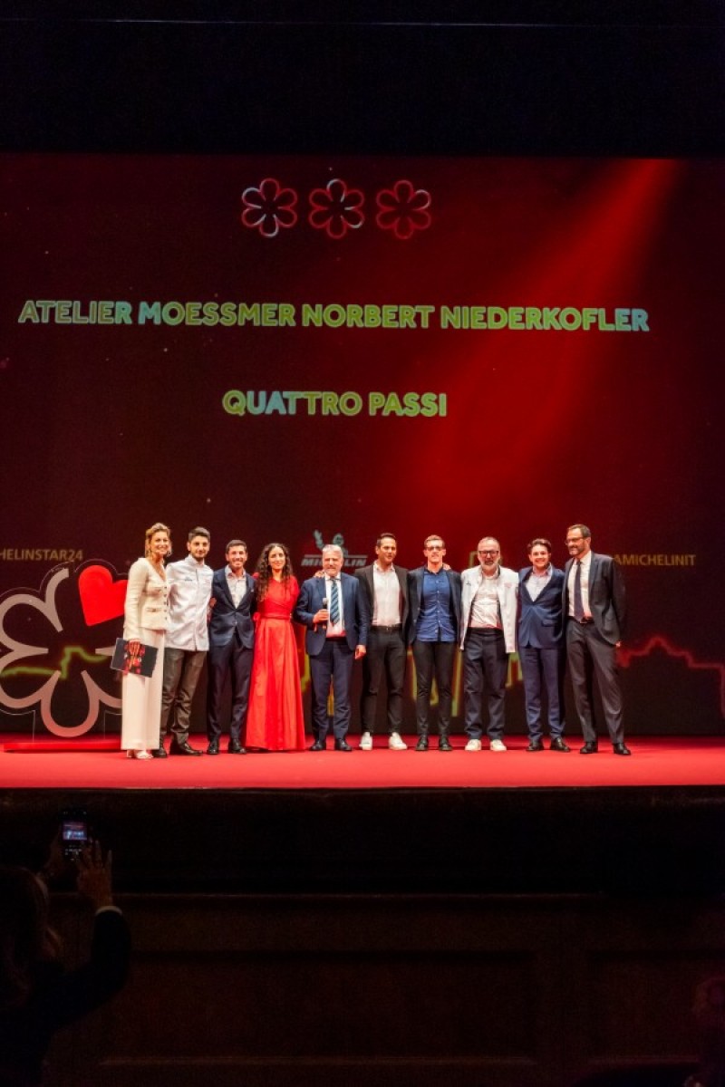 Oltre alle due new entry – Atelier Moessmer Norbert Niederkofler, nuova sede per il cuoco delle montagne, e "Quattro passi" a Nerano – si confermano tristellati: Villa Crespi a Orta San Giulio (Novara), Piazza Duomo ad Alba (Cuneo), Da Vittorio a Brusaporto (Bergamo), Le Calandre a Rubano (Padova), Dal Pescatore a Canneto sull'Oglio (Mantova), Osteria Francescana a Modena, Enoteca Pinchiorri a Firenze, La Pergola a Roma, Reale a Castel di Sangro (L'Aquila), Uliassi a Senigallia (Ancona) e Enrico Bartolini al Mudec a Milano.