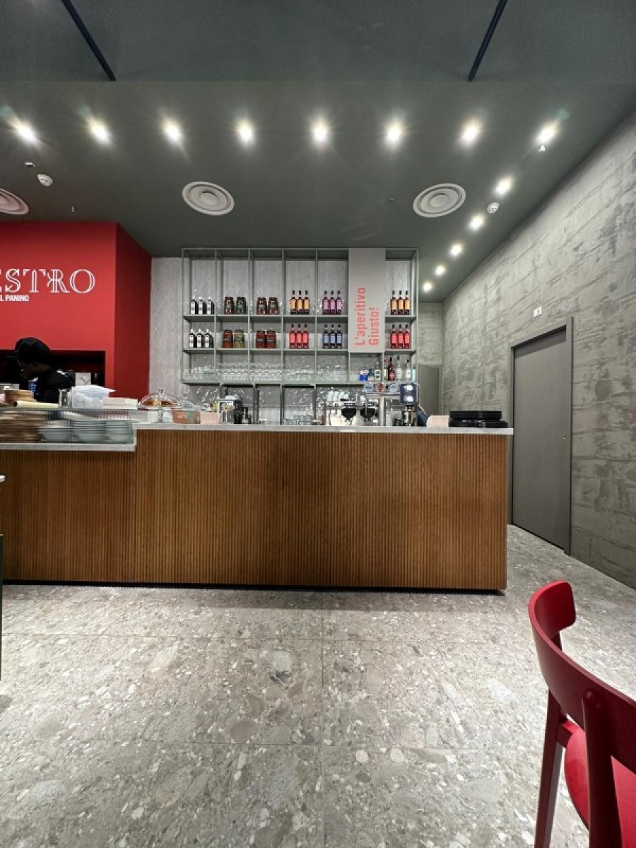 Sull'onda del successo raccolto dal format "Aperitivo", anche in questo nuovo locale è stata inserita un'area dedicata in cui gli ospiti possono gustare un’ampia selezione di mini panini e signature cocktails in un’atmosfera conviviale.