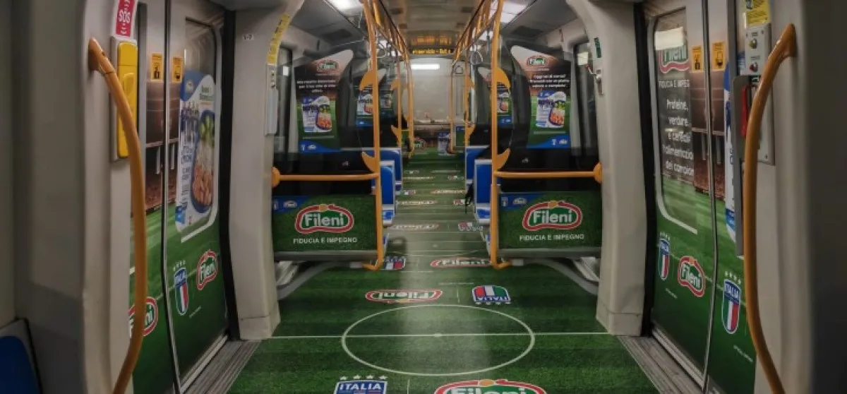 Un’iniziativa Out Of Home che vede la metropolitana milanese personalizzata e trasformata in un campo da calcio firmato Fileni per permettere ai passeggeri di vivere il trasporto per lo sport e il cibo attraverso un’esperienza unica e divertente.