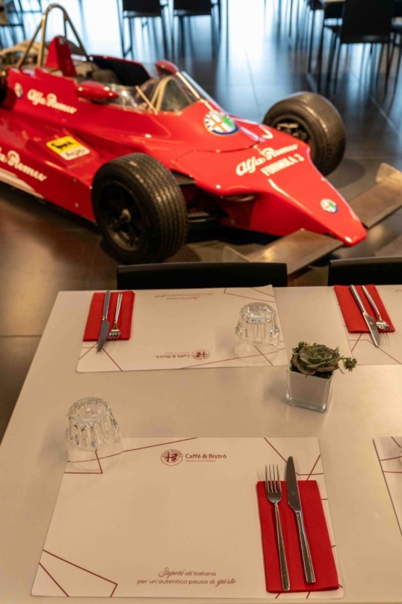 La cucina riflette i valori e la tradizione del marchio italiano, col menù curato dallo chef Eugenio Moreni che miscela con creatività materie prime di altissima qualità. L'Alfa Romeo Caffè & Bistrò offre ai visitatori servizi di caffetteria e ristorazione ma quando il museo è chiuso si trasforma in uno spazio esclusivo e diventa la cornice scenografica per eventi privati, riunioni, convegni o attività di team building nelle ampie sale contraddistinte da nomi come “Giulia”, “Giulietta”, “Alfetta”, “Monza”, “Le Mans” e “Daytona”.