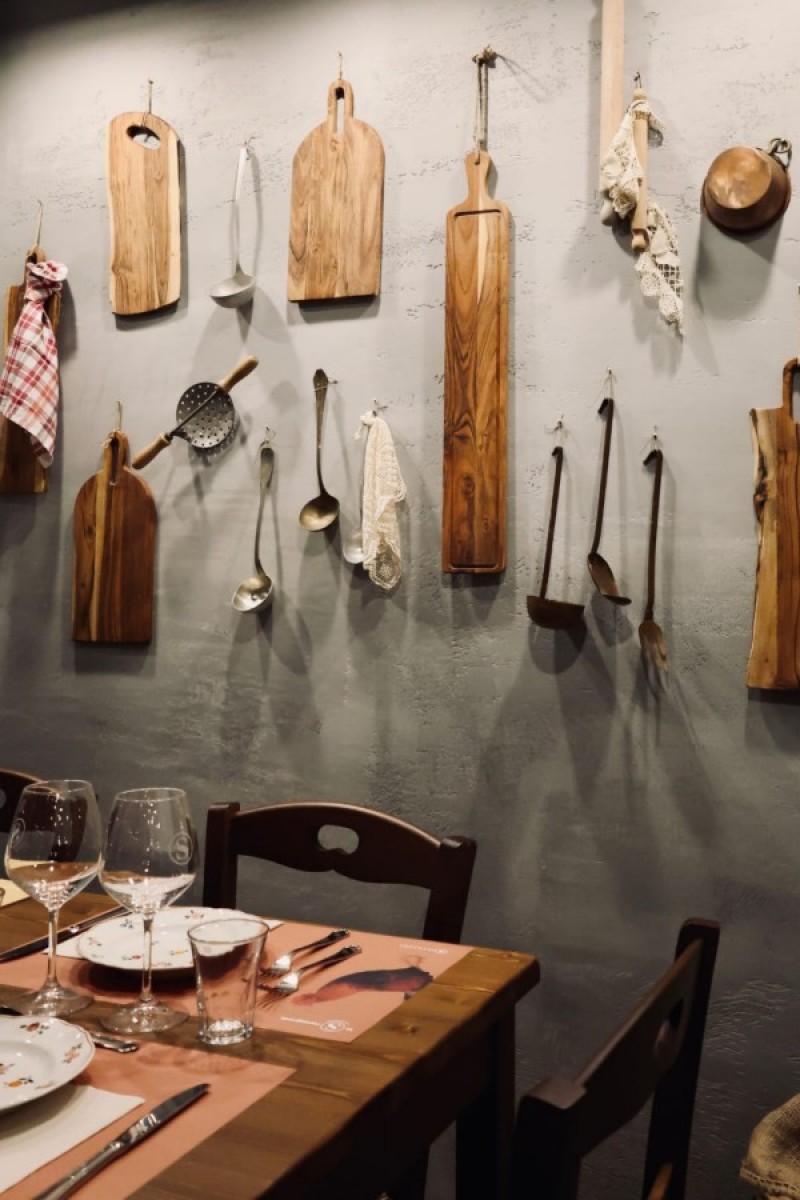 A completare il mood sono i complementi di arredo e l'oggettistica di una volta. Ogni dettaglio evoca profumi e colori tipici dell'entroterra romagnolo, dalle balle di fieno alle spighe di grano fino agli outfit dello staff ispirati all'abbigliamento dei contadini.