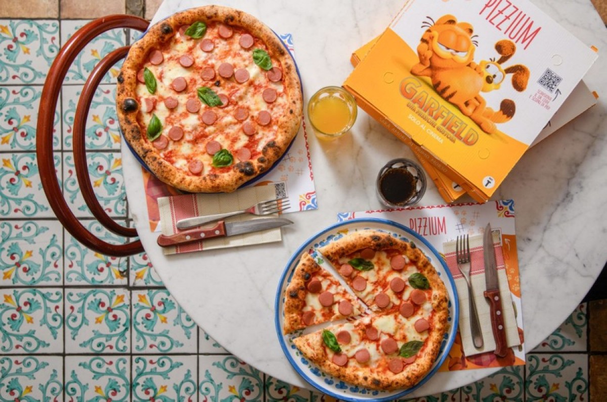 22 Aprile 2024In previsione dell'imminente uscita del nuovo cartoon “Garfield – Una missione gustosa”, Pizzium lancia la Pizza Garfield con pomodoro, spolverata di Grana Padano, fior di latte d’Agerola e würstel di Fassona, disponibile sia nella misura standard che baby. Per l'occasione, dallo scorso 16 aprile tutte le pizzerie della catena si sono vestite di arancione con tovagliette e scatole d’asporto con protagonisti Garfield e il suo amico Odie.