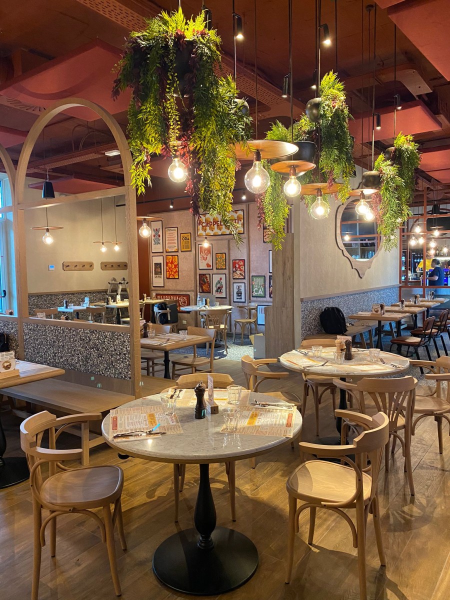Il ristorante di Milano ospita fino a 130 coperti, tra spazi interni e dehor esterno, ma la novità del punto vendita è soprattutto il comfort acustico. Infatti, grazie alla collaborazione con Isolspace, brand di Tecnasfalti, l’ambiente acustico è stato ottimizzato attraverso l’inserimento di pannelli fonoassorbenti personalizzati, Isospace Style e Isolspace Frame, che con il loro design comunicano l’immagine e i valori del brand.