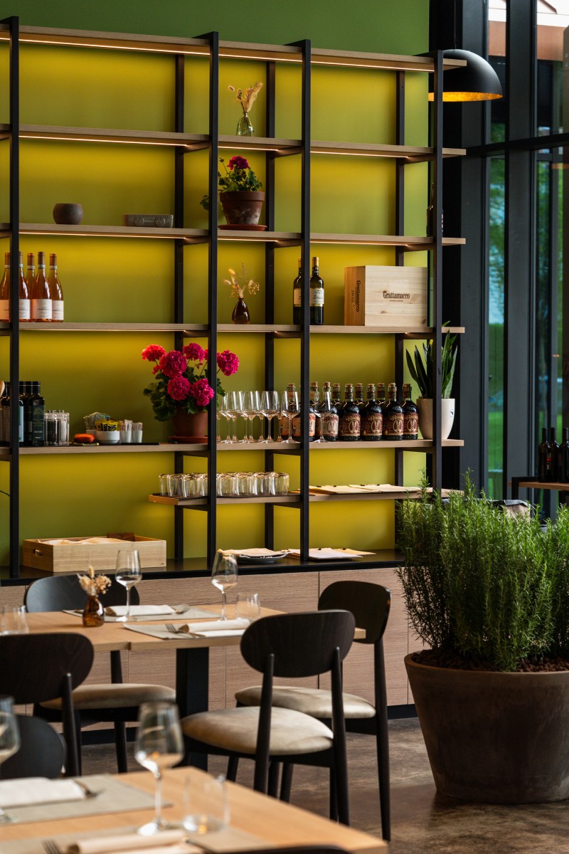 Radicamento nel territorio e attenzione alla sostenibilità si ritrovano anche nella particolarità della struttura architettonica, che seguendo un’idea del titolare Stefano Enzo, si ispira alle serre locali e ai mercati coperti cittadini.