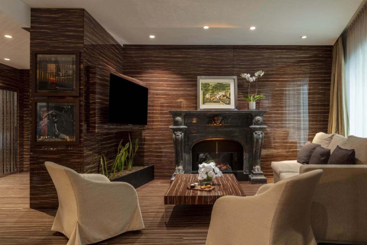 All’interno, gli spazi comuni e le 79 suites esprimono la visione dell’ospitalità di Romeo Napoli. Gli ambienti eleganti e accoglienti rivelano una straordinaria cura dei dettagli resa possibile dal saper fare delle migliori maestranze italiane che si sono occupate di dar forma al progetto di interior design, celebrando materiali nobili come il marmo, l’ebano macassar e altre pregiate essenze lignee. Le atmosfere calde, razionali e contemporanee si animano di importanti pezzi di design firmati da grandi maestri italiani e internazionali e con una significativa collezione di opere d’arte che la proprietà arricchisce costantemente.