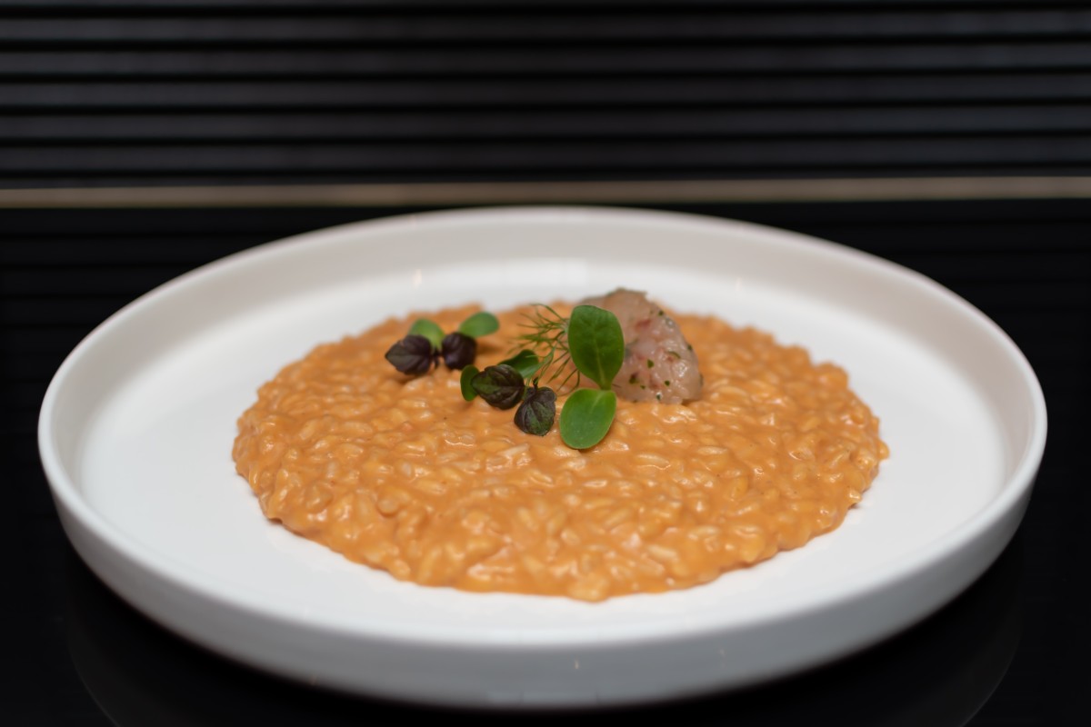 Il menu, basato sul pescato del giorno, prevede crudi, tartare e carpacci, serviti con julienne di verdure, erbe aromatiche ed emulsioni leggere, ma anche piatti caldi di mare o evergreen come la Catalana di astice. I primi sono quelli della tradizione marinara, con qualche rivisitazione sul tema che esalta la materia prima. Un esempio? Il Tagliolino all’uovo fatto in casa Ajo e Ojo e branzino. Il signature è, invece, il Risotto alla crema di scampi mantecato con una stracciatella di bufala campana. Passando ai secondi, questi sono proposti in diverse cotture, dal sale all’acqua pazza, dal forno al tegame o alla griglia, come il Calamaretto piselli e menta; l’offerta comprende anche pesci interi, affusolati e piatti, serviti al tavolo col guéridon.