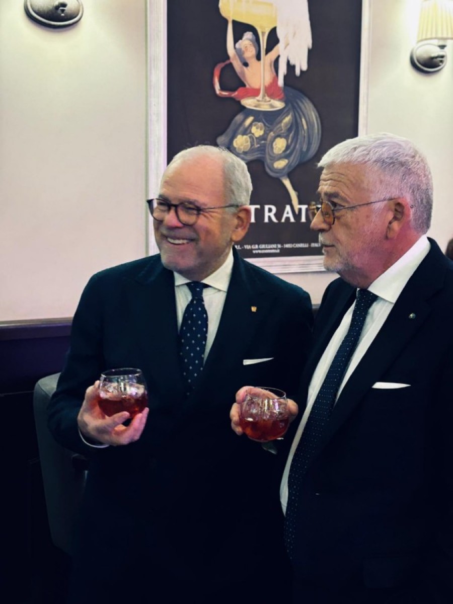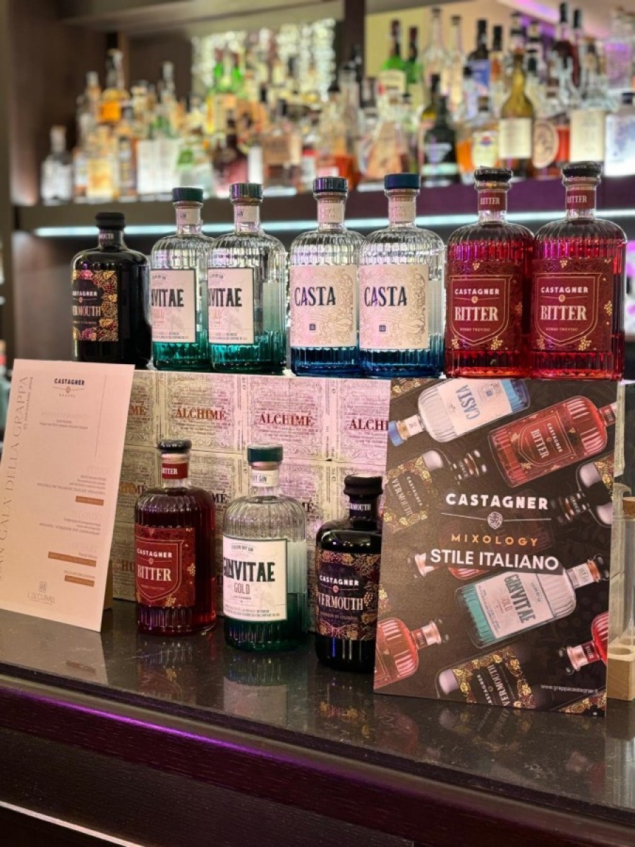 Ad aprire la serata l’aperitivo con mondeghili della tradizione milanese, tartellette di frolla con baccalà mantecato e chips di polenta soffiata accompagnati da Casta Negroni a base di Casta, la grappa creata nel 2017 per la miscelazione, e i nuovi gioielli di famiglia, Bitter e Vermouth Castagner. «Questi prodotti sono il frutto di un attento lavoro di Terry Monroe e di mio nipote Carlo Castagner – ha sottolineato Castagner -, che in questi anni ha seguito meticolosamente e con passione il processo di infusione secondo le regole della scuola erboristica e di produzione di gin, bitter e vermouth. Abbiamo voluto connotare queste nuove creazioni di un forte legame con il nostro DNA - l’uva - e il nostro territorio: nel Bitter, infatti, è infuso il radicchio di Treviso Igp; nel Vermouth la boswellia e la mirra sono infuse nel Glera, il vitigno del Prosecco, come omaggio alle nostre colline, a cui s’aggiunge l’aloe a donare freschezza, le fave di cacao che bilanciano il profilo gustativo con la loro dolcezza morbida, il macis e la cannella che lasciano una piacevole nota speziata. Il passaggio in barrique di ciliegio, infine, dona una nota suadente e marascata che ben riconduce al nostro stile».