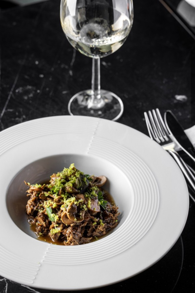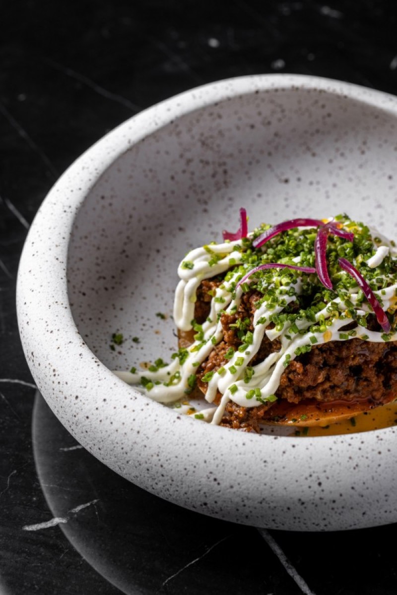 Inaugurato pochi giorni fa, si inserisce perfettamente nel contesto architettonico in cui è ospitato, all’interno di un ex birrificio in via Nizza. Allestito all'ultimo piano dell'edificio, il ristorante conta su una grande sala di forte impatto, ampia 300 mq con 120 coperti. Tutti i materiali utilizzati sono primordiali, come la parete graficizzata in pietra tagliata, il marmo e il legno per i tavoli, la resina materica di ResinLab sul pavimento che cambia colore in base alla luce e alle temperature. Tramite grandi pareti a vetri, si intravede lo spazio esterno: un’enorme terrazza di 500 mq, con circa 150 sedute, con una suggestiva vista urbana sul quartiere Salario – Nomentano e un’importante arredo verde che trasforma lo spazio in una sorta jungle rooftop.