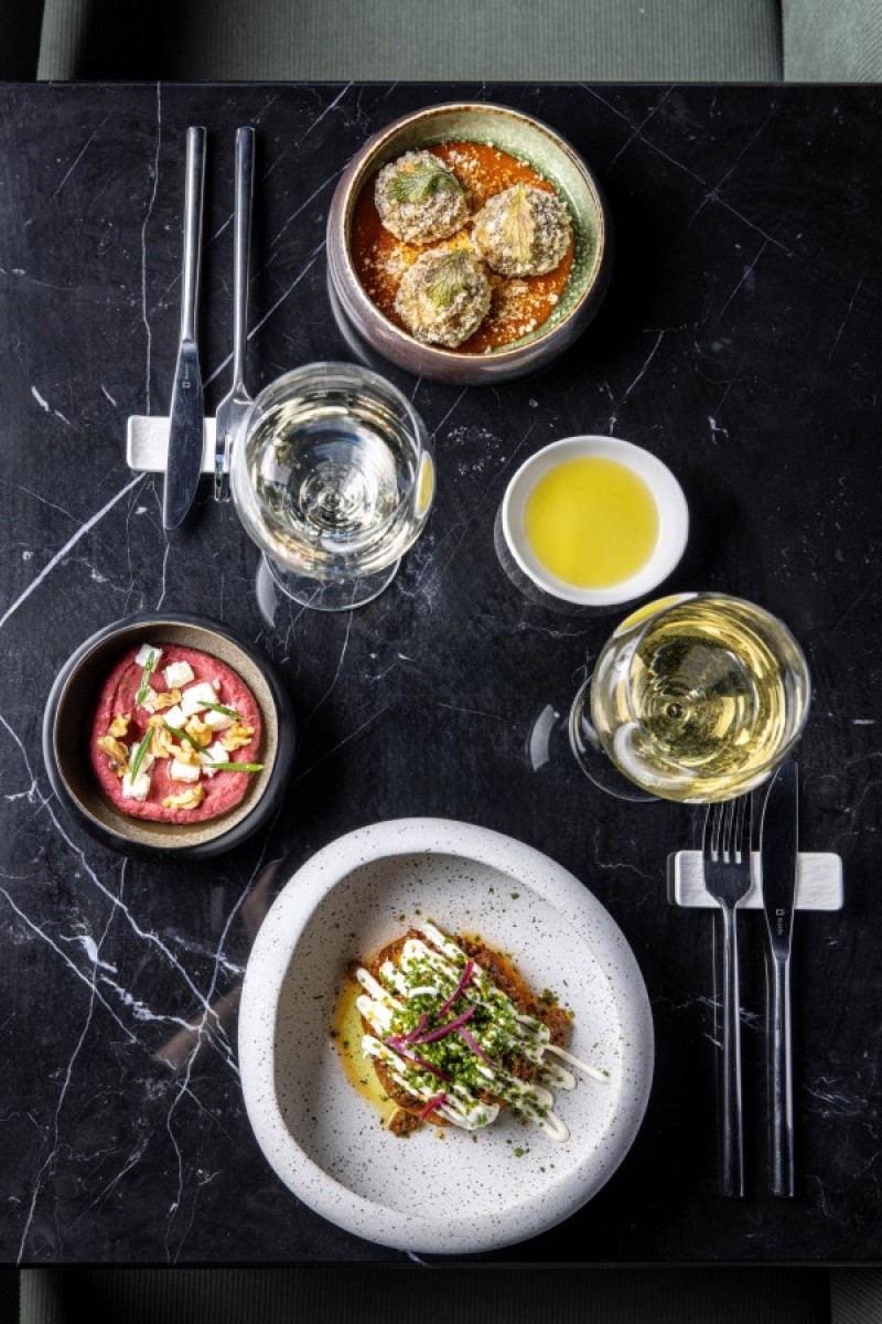Per il momento aperitivo: tapas espresse dalla cucina in abbinamento ad una mixology d’autore, tra i grandi classici dell’american bar, signature drink e analcolici con infusi homemade. La carta dei cocktail è ideata per abbinamenti anche durante il pranzo e la cena. Presente anche una carta tutta dedicata al gin, con circa 150 etichette da tutto il mondo, per il gin tonic perfetto. Per i vini, una carta con circa 60 referenze, tra vini e bollicine, prevalentemente nazionale con qualche chicca estera, tra Francia e Slovenia. Presenti sia vini naturali che convenzionali.