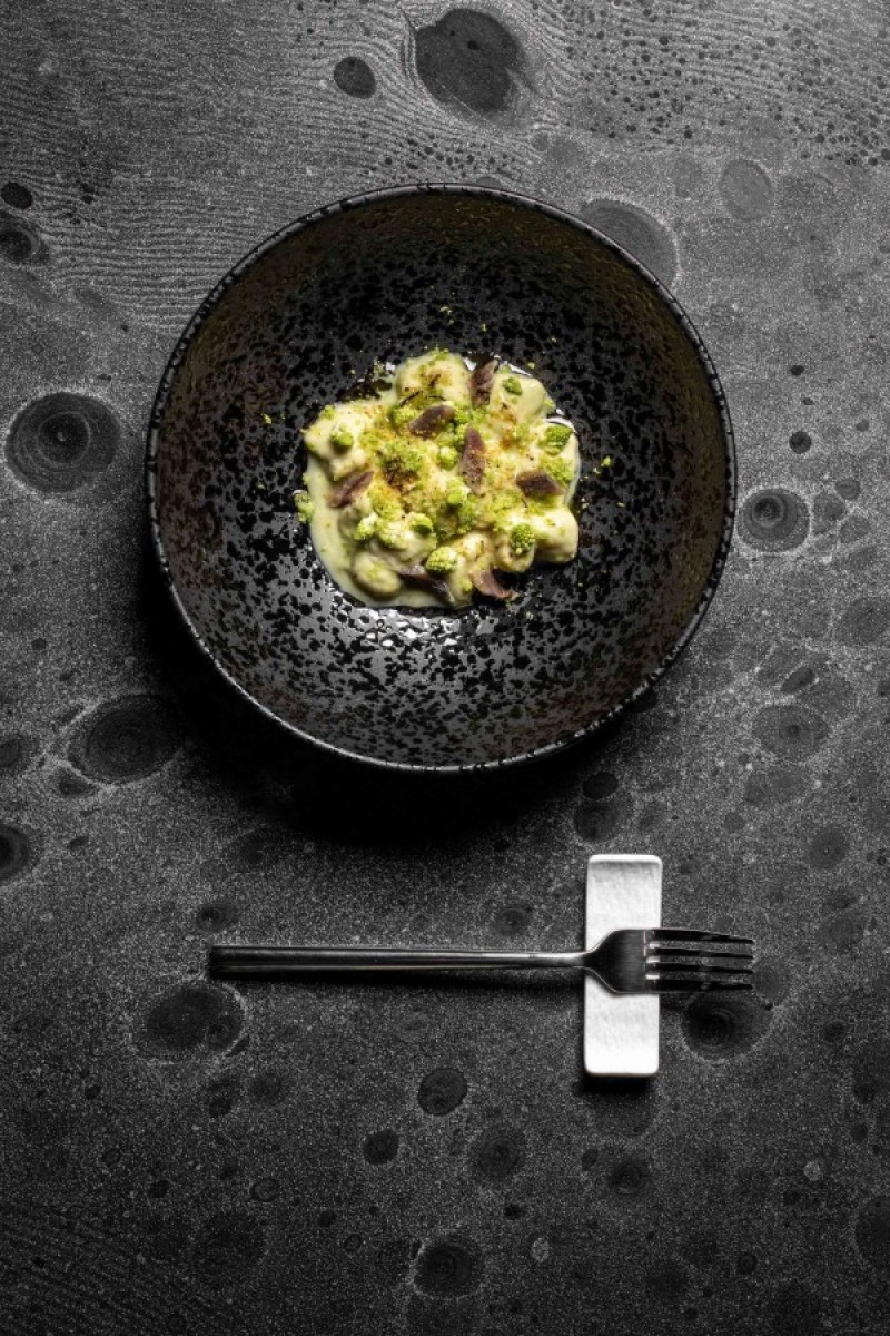 Il progetto culinario, condiviso con lo chef Andrea Palmieri, vede come executive chef Flavio Del Broccolo, giovane chef romano classe '86 con alle spalle importanti esperienze in diverse cucine romane, che qui da Materia coordina una giovane brigata. La carta cambia e si evolve: a pranzo un menu più ‘semplice’, mentre a cena c’è uno switch che strizza l’occhio al fine dining, senza però esagerare. Il centro è sempre la Materia prima, rispettata e declinata durante tutto l’arco della giornata e trattata con tecniche moderne e innovative. L’impronta è fortemente italiana, contemporanea, che non rinuncia però a qualche contaminazione internazionale, con grande attenzione per la parte vegetale. L’idea di fondo è quella di una cucina fortemente inclusiva, che si apre a tutti in maniera trasversale, proprio come fa l’arte contemporanea con il pubblico, così da lanciare un messaggio che lasci il segno in maniera diffusa.